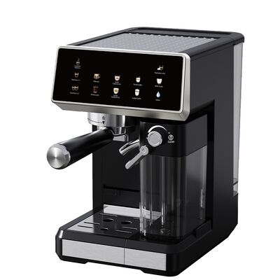 Enjoy barista-quality coffee at home with this 20 Bar automatic coffee machine featuring cool espresso capability and a stainless steel body for lasting durability. The 1350W power delivers fast heating, while the 1.8L water tank allows multiple cups without frequent refilling. The touch screen display makes selecting espresso, cappuccino, latte, americano, and cool espresso effortless. The built-in adjustable grinder ensures freshly ground beans, while the automatic milk frothing system creates creamy foam for specialty drinks. Programmable temperature control ensures consistent results, and self-cleaning simplifies maintenance. Available in 5 operating languages. Perfect for hotel, household, home, and kitchen use.